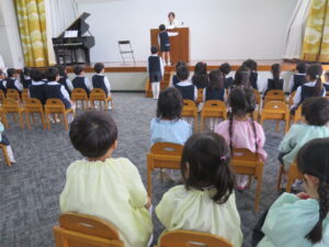 令和7年度音楽会が行われました♪ みんなで「たのしいひなまつり」を歌って、合唱の部スタートです😊 〈合唱の部〉 年少さんは「ありさんのおはな …