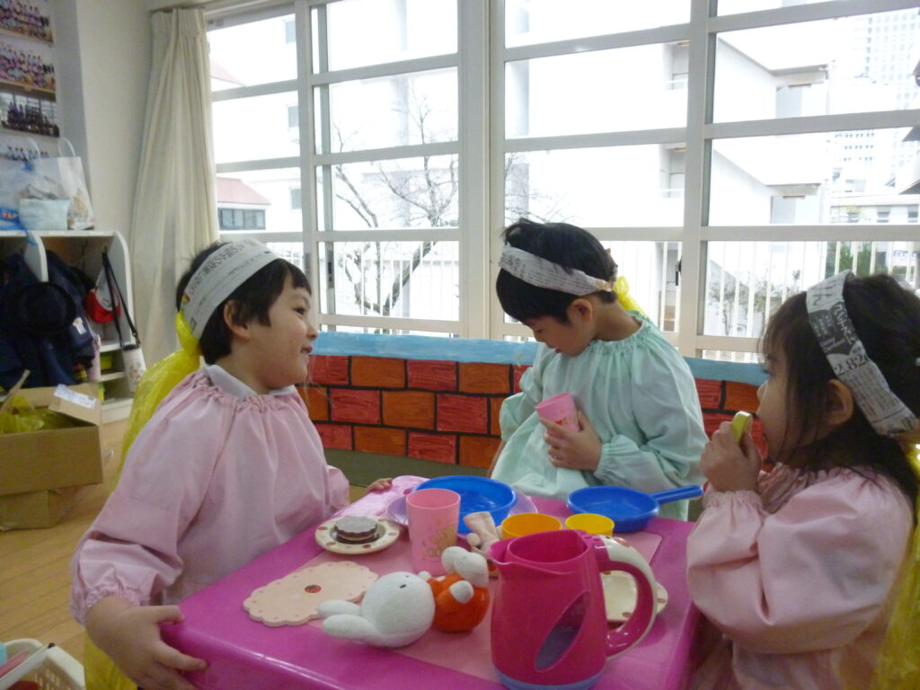 おままごとで、役割を決めながらごっこ遊び(*^^*)