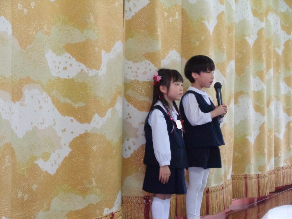 年長さんは「小さな世界」を演奏し、「こころのねっこ」を歌いました(^^♪