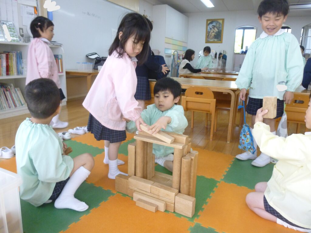 友だちと協力しながら積み木で遊んだり、