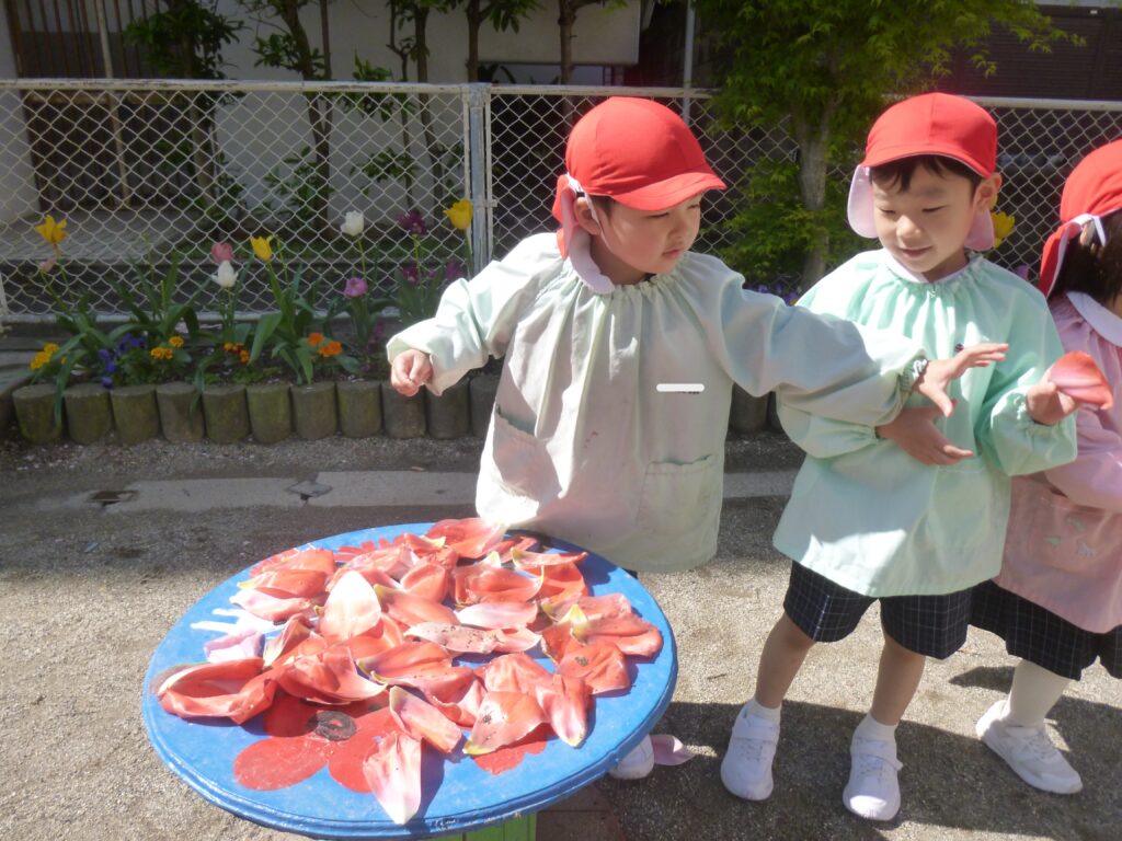 チューリップの花びらが乾いたら、また遊びに使って遊ぼうね🌷