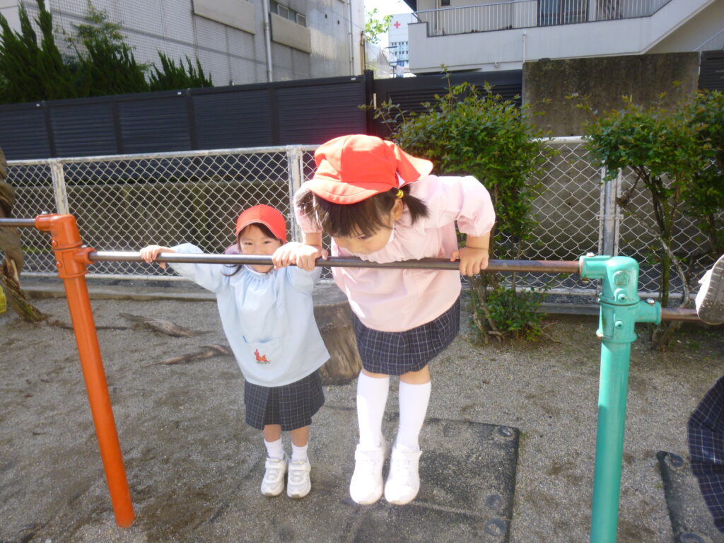 年中からチャレンジしていた鉄棒では、少しずつできる技も増えてきましたよ🎵