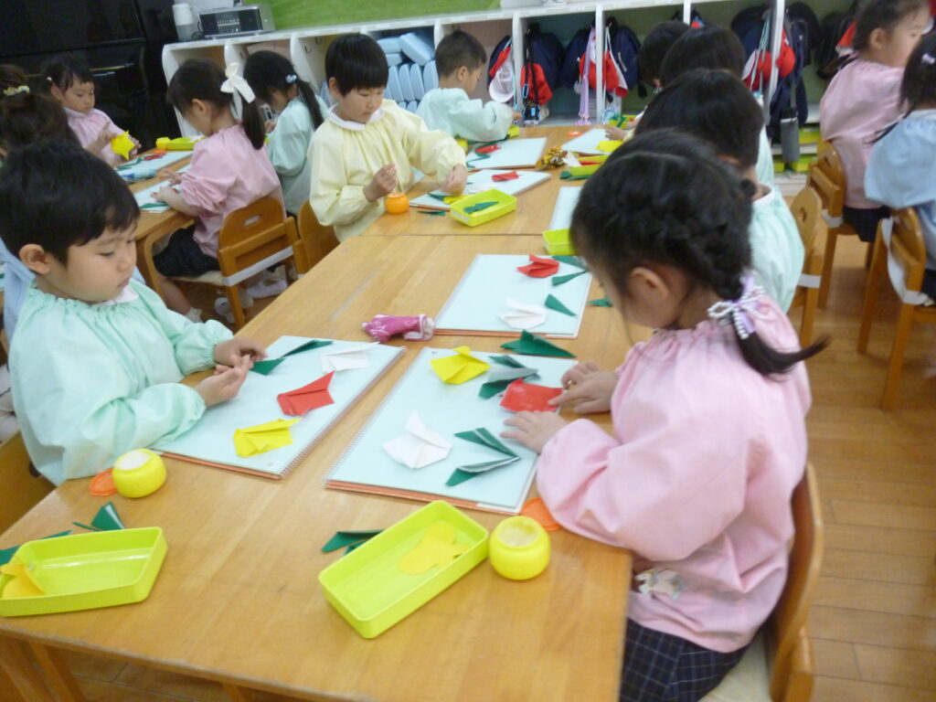 折り紙でもチューリップを折りました🌷